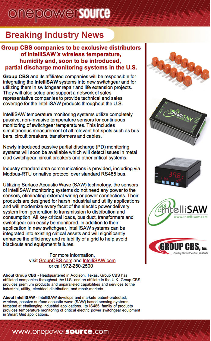 Volume 11: Group CBS companies to be exclusive distributors of IntelliSAW systems