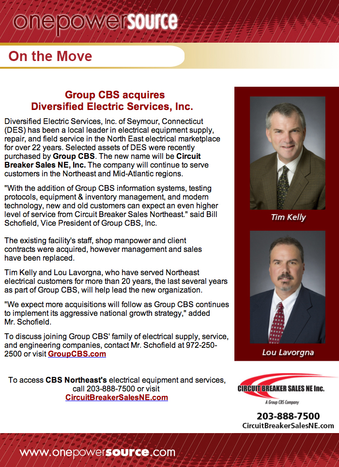 Volume 10: Group CBS acquires Diversified Electric Services, Inc.